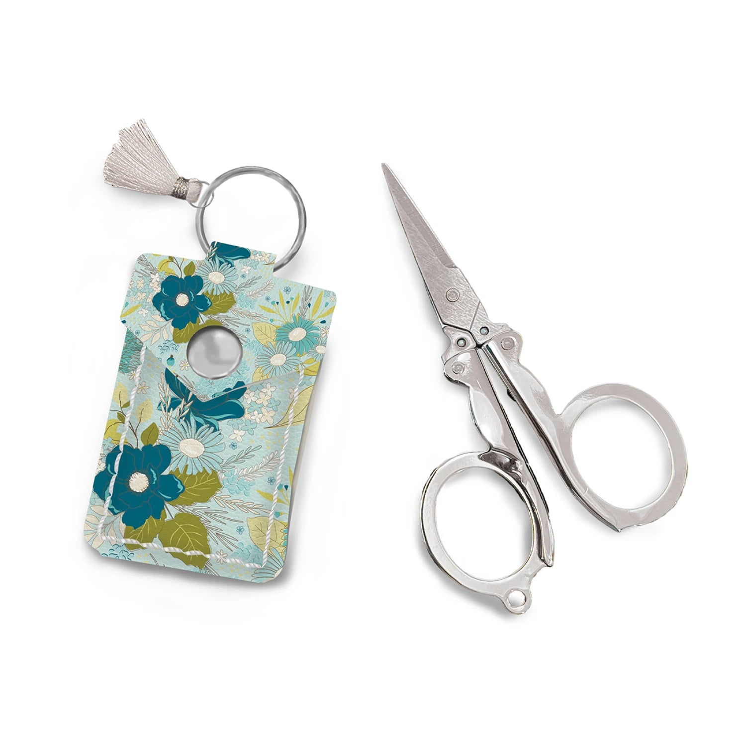 The Scissor Pouch by Hometown Leatherworks for Riley Blake Designs is proudly American made by hometown artisans. This pouch, fashioned from top-notch full-grain leather, is both hard-wearing and fashionable, rendering it a superb complement to your crafting gear. The snap closure effectively shields your sewing scissors, keeping them safe and secure. The leather scissor pouch will aid you in staying organized, enabling you to concentrate on your crafting instead of hunting for supplies. Regardless of whether you're creating something extraordinary or simply striving to keep your workspace neat, the Finished Leather Scissor Pouch is the ultimate selection for all crafters. The pouch includes a pair of folding embroidery scissors. This pouch features a design from Feed My Soul by Sandy Gervais. Pouch size is 2" x 2 1/2".